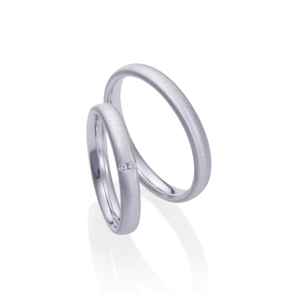 縦に細かな線を入れるファインマットという手法により、リング全体が品のある輝きを放つデザイン。ダイヤモンド有モデルは縦に2石セッティングされており、上質なダイヤモンドの輝きを品よく楽しめる結婚指輪です。