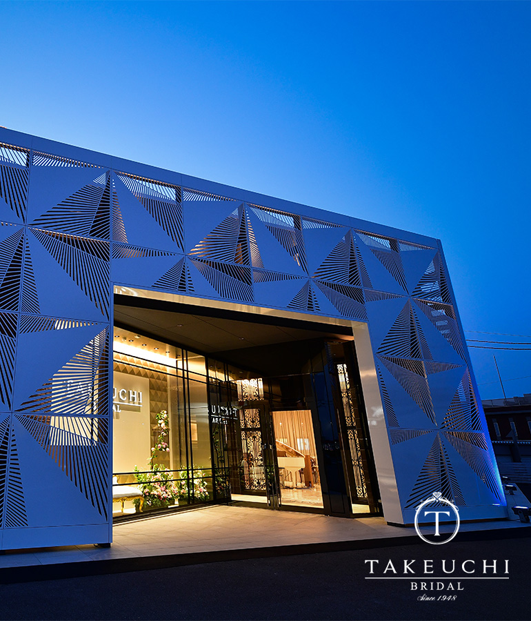 TAKEUCHI BRIDAL金沢・野々市店は、厳選されたラインナップは勿論、BGM、照明、華やかな造花など、こだわりの空間でゆっくりくつろいで頂けるよう設計されています。北陸3県の数あるブライダルショップの中で、最大の売り場面積を有した広々としたフロアをもち、ブライダルブランド数においても50ブランド、8,000点の指輪を取り揃えた北陸最大級の品揃えを誇る店舗です。世界三大カッターズブランドや県内唯一の正規代理店となる人気有名ブランドを多数ラインナップしております。